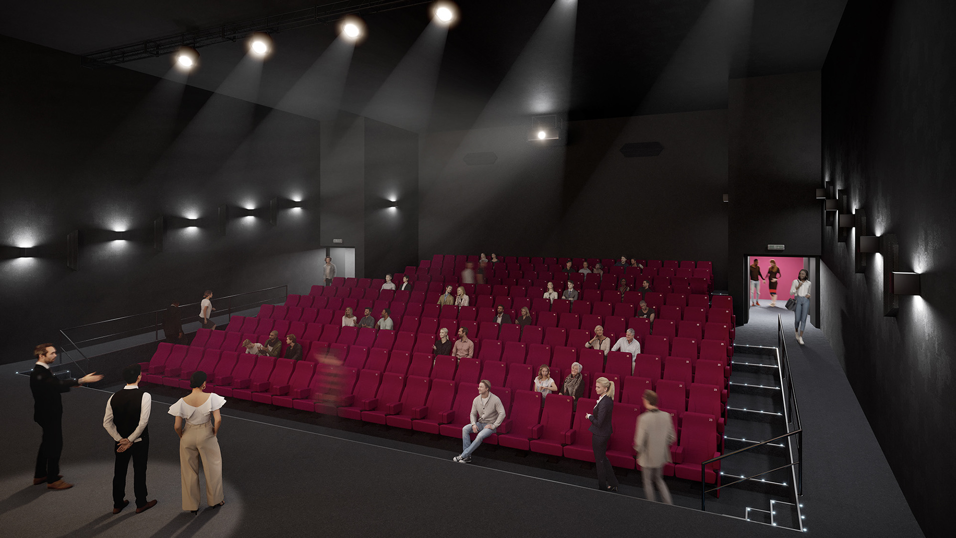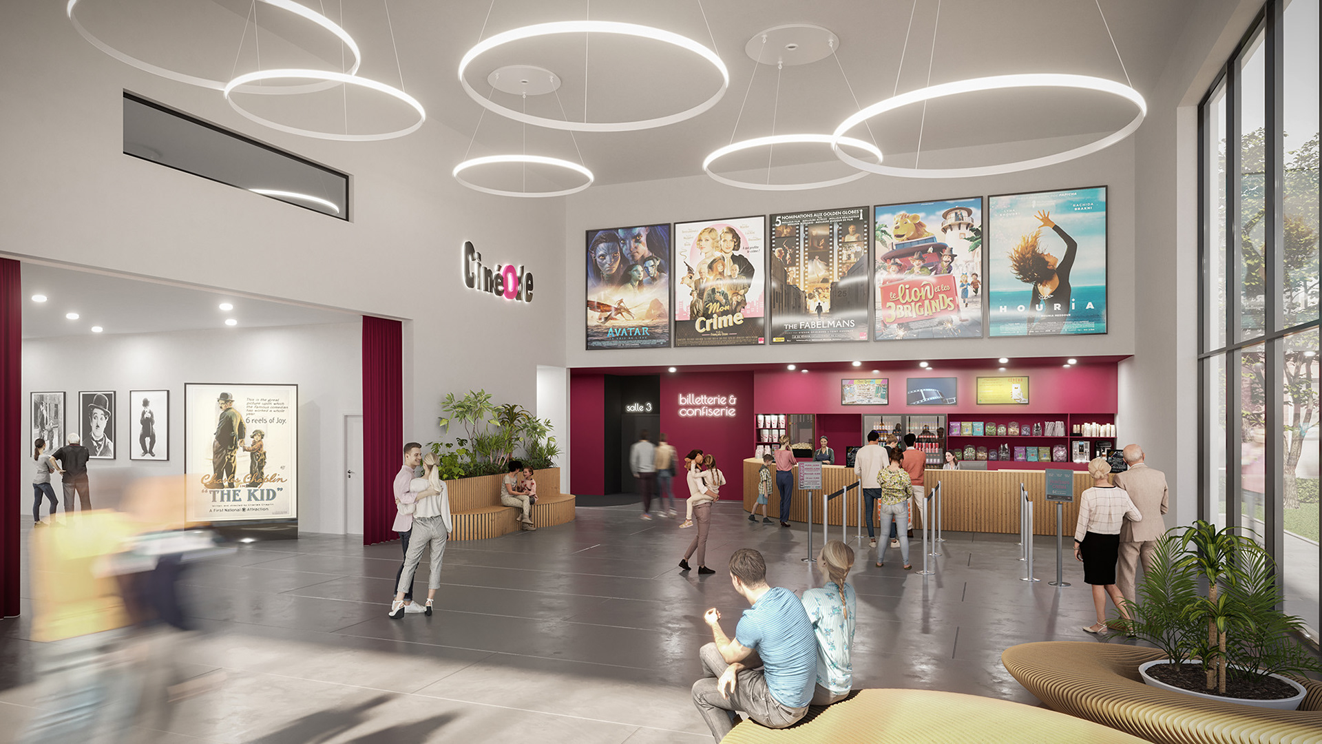 Création d'images d'ambiance pour un ensemble de salles de cinéma - Architecte : Dehaene + Partenaires - MOA : CinéOde - AMO : NHOOD - Scénographie : KANJU
